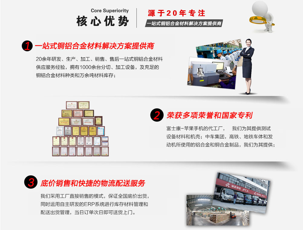 深圳市錦發(fā)銅鋁有限公司成立于1998年,注冊(cè)資金1億元人民幣,是一家國家高新技術(shù)企業(yè),榮獲廣東省著名商標(biāo)稱號(hào)??偛考吧a(chǎn)基地位于深圳寶安松崗,占地面積3萬多平方。公司成立以來,一直專注于鋁材、銅材等合金材料的研發(fā)、生產(chǎn)加工及銷售。倉儲(chǔ)上萬噸銅鋁合金材料,迅速響應(yīng)客戶需求。